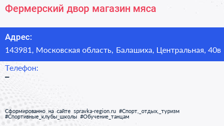 Фермерский двор, магазин мяса по адресу 143981, Московская область, Балашиха, Центральная, 40в в дальнейшем Организация, размещена в следующих категориях: