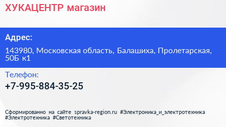 ХУКАЦЕНТР, магазин по адресу 143980, Московская область, Балашиха, Пролетарская, 50Б к1 в дальнейшем Организация, размещена в следующих категориях: