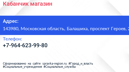 Адрес: Московская область, Балашиха, проспект Ленина, 22