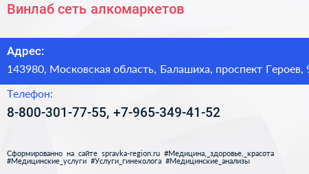 Винлаб, сеть алкомаркетов по адресу 143980, Московская область, Балашиха, проспект Героев, 9 в дальнейшем Организация, размещена в следующих категориях: