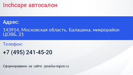 Inchcape, автосалон по адресу 143914, Московская область, Балашиха, микрорайон ЦОВБ, 21 в дальнейшем Организация, размещена в следующих категориях: