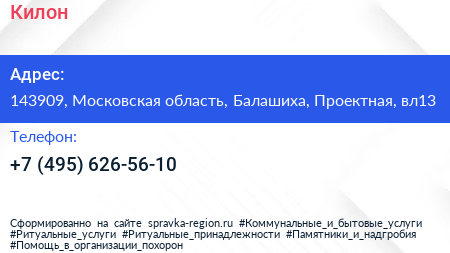 Килон по адресу 143909, Московская область, Балашиха, Проектная, вл13 в дальнейшем Организация, размещена в следующих категориях: