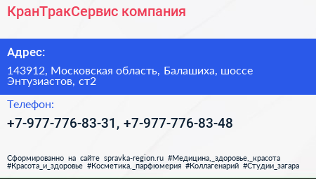 КранТракСервис, компания по адресу 143912, Московская область, Балашиха, шоссе Энтузиастов, ст2 в дальнейшем Организация, размещена в следующих категориях: