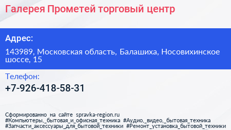 Галерея Прометей, торговый центр по адресу 143989, Московская область, Балашиха, Носовихинское шоссе, 15 в дальнейшем Организация, размещена в следующих категориях: