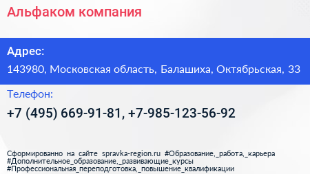 Альфаком, компания по адресу 143980, Московская область, Балашиха, Октябрьская, 33 в дальнейшем Организация, размещена в следующих категориях: