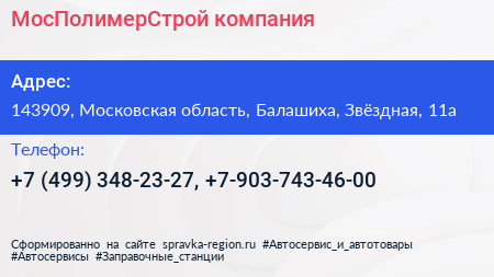 МосПолимерСтрой, компания по адресу 143909, Московская область, Балашиха, Звёздная, 11а в дальнейшем Организация, размещена в следующих категориях: