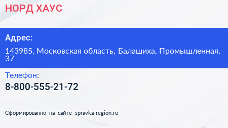НОРД ХАУС по адресу 143985, Московская область, Балашиха, Промышленная, 37 в дальнейшем Организация, размещена в следующих категориях: