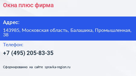 Окна плюс, фирма по адресу 143985, Московская область, Балашиха, Промышленная, 38 в дальнейшем Организация, размещена в следующих категориях:
