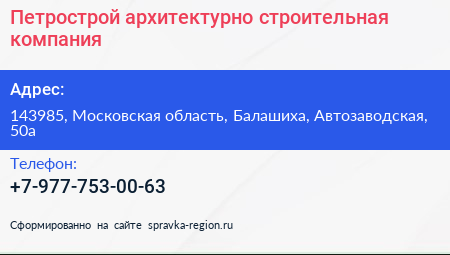 Петрострой, архитектурно-строительная компания по адресу 143985, Московская область, Балашиха, Автозаводская, 50а в дальнейшем Организация, размещена в следующих категориях: