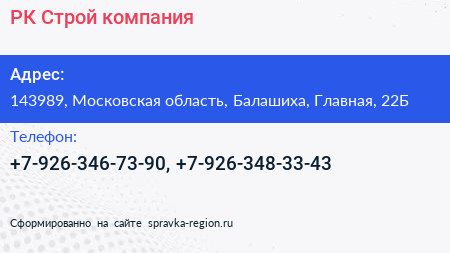 РК-Строй, компания по адресу 143989, Московская область, Балашиха, Главная, 22Б в дальнейшем Организация, размещена в следующих категориях: