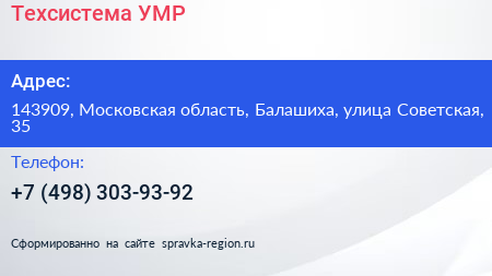 Техсистема-УМР по адресу 143909, Московская область, Балашиха, улица Советская, 35 в дальнейшем Организация, размещена в следующих категориях:
