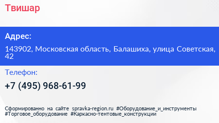 Твишар по адресу 143902, Московская область, Балашиха, улица Советская, 42 в дальнейшем Организация, размещена в следующих категориях:
