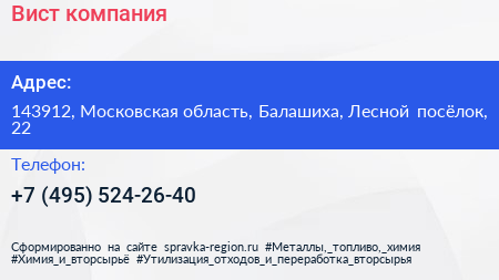 Вист, компания по адресу 143912, Московская область, Балашиха, Лесной посёлок, 22 в дальнейшем Организация, размещена в следующих категориях:
