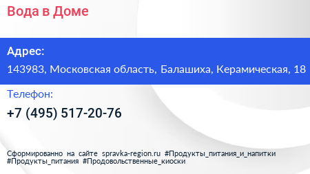 Вода в Доме по адресу 143983, Московская область, Балашиха, Керамическая, 18 в дальнейшем Организация, размещена в следующих категориях: