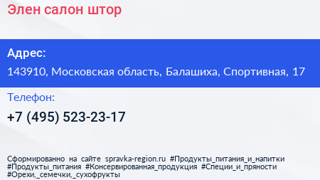 Элен, салон штор по адресу 143910, Московская область, Балашиха, Спортивная, 17 в дальнейшем Организация, размещена в следующих категориях: