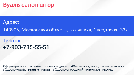 Вуаль, салон штор по адресу 143905, Московская область, Балашиха, Свердлова, 33а в дальнейшем Организация, размещена в следующих категориях: