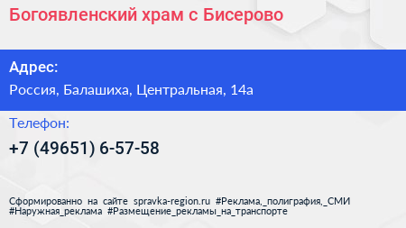 Богоявленский храм, с. Бисерово по адресу Церковь Богоявления Господня, 14, Центральная улица, Бисерово, Богородский городской округ, Московская область, Центральный федеральный округ, 142451, Россия в дальнейшем Организация, размещена в следующих категориях: