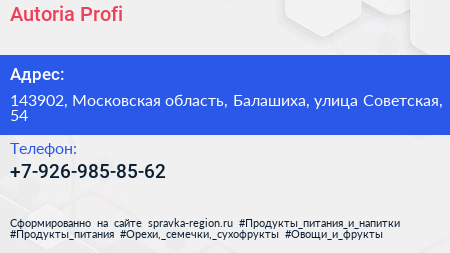 Autoria-Profi по адресу 143902, Московская область, Балашиха, улица Советская, 54 в дальнейшем Организация, размещена в следующих категориях:
