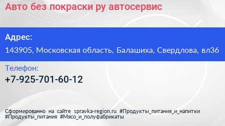 Авто-без-покраски.ру, автосервис по адресу 143905, Московская область, Балашиха, Свердлова, вл36 в дальнейшем Организация, размещена в следующих категориях: