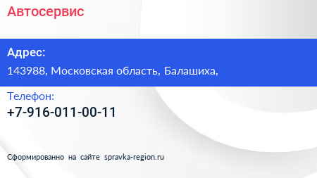 Автосервис по адресу 143988, Московская область, Балашиха, в дальнейшем Организация, размещена в следующих категориях: