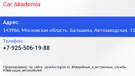 Car-Akademia по адресу 143986, Московская область, Балашиха, Автозаводская, 11 в дальнейшем Организация, размещена в следующих категориях: