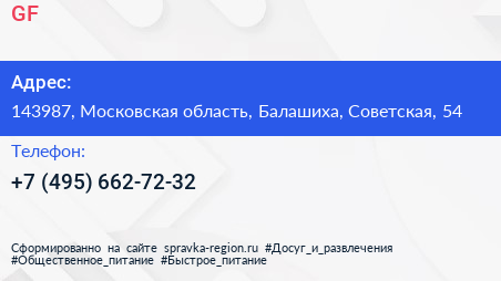 GF по адресу 143987, Московская область, Балашиха, Советская, 54 в дальнейшем Организация, размещена в следующих категориях: