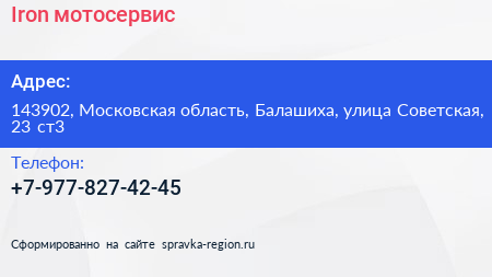 Iron, мотосервис по адресу 143902, Московская область, Балашиха, улица Советская, 23 ст3 в дальнейшем Организация, размещена в следующих категориях: