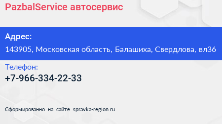 PazbalService, автосервис по адресу 143905, Московская область, Балашиха, Свердлова, вл36 в дальнейшем Организация, размещена в следующих категориях: