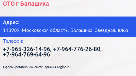 СТО, г. Балашиха по адресу 143909, Московская область, Балашиха, Звёздная, вл6а в дальнейшем Организация, размещена в следующих категориях: