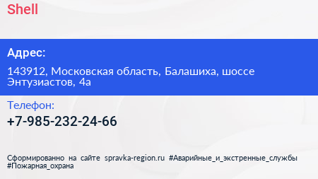 Shell по адресу 143912, Московская область, Балашиха, шоссе Энтузиастов, 4а в дальнейшем Организация, размещена в следующих категориях: