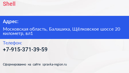 Shell по адресу Московская область, Балашиха, Щёлковское шоссе 20 километр, вл1 в дальнейшем Организация, размещена в следующих категориях: