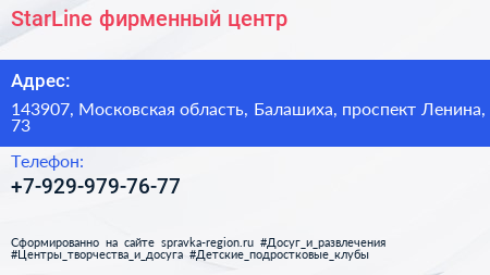 StarLine, фирменный центр по адресу 143907, Московская область, Балашиха, проспект Ленина, 73 в дальнейшем Организация, размещена в следующих категориях: