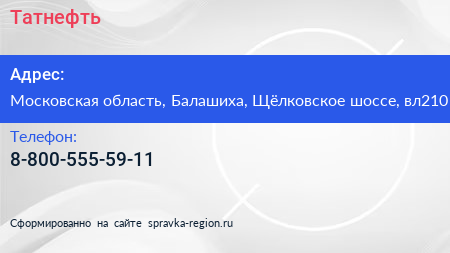 Татнефть по адресу Московская область, Балашиха, Щёлковское шоссе, вл210 в дальнейшем Организация, размещена в следующих категориях: