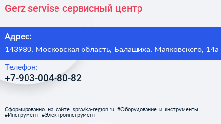 Gerz-servise, сервисный центр по адресу 143980, Московская область, Балашиха, Маяковского, 14а в дальнейшем Организация, размещена в следующих категориях: