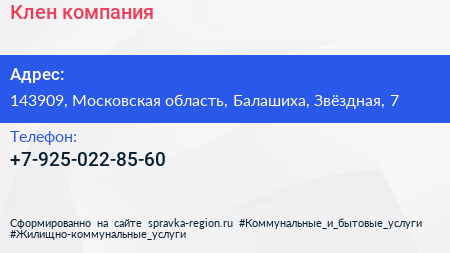 Для связи с организацией воспользуйтесь номером телефона: +7-925-022-85-60. Пн: c 09:00-18:00, Вт: c 09:00-18:00, Ср: c 09:00-18:00, Чт: c 09:00-18:00, Пт: c 09:00-18:00, Сб: выходной, Вс: выходной, вы можете обратиться в эту организацию.