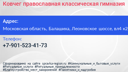 Ковчег, православная классическая гимназия по адресу Московская область, Балашиха, Леоновское шоссе, вл4 к2 в дальнейшем Организация, размещена в следующих категориях:
