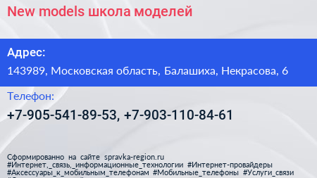 New models, школа моделей по адресу 143989, Московская область, Балашиха, Некрасова, 6 в дальнейшем Организация, размещена в следующих категориях: