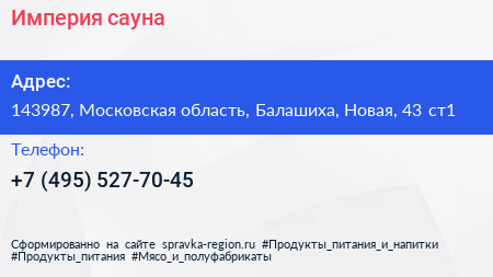 Империя, сауна по адресу 143987, Московская область, Балашиха, Новая, 43 ст1 в дальнейшем Организация, размещена в следующих категориях: