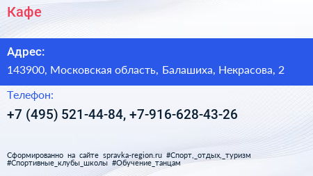 Кафе по адресу 143900, Московская область, Балашиха, Некрасова, 2 в дальнейшем Организация, размещена в следующих категориях: