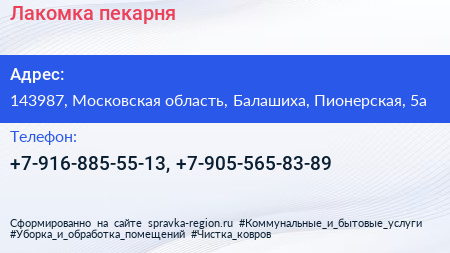Лакомка, пекарня по адресу 143987, Московская область, Балашиха, Пионерская, 5а в дальнейшем Организация, размещена в следующих категориях:
