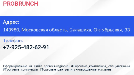 PROBRUNCH по адресу 143980, Московская область, Балашиха, Октябрьская, 33 в дальнейшем Организация, размещена в следующих категориях: