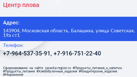 Центр плова по адресу 143904, Московская область, Балашиха, улица Советская, 19а ст1 в дальнейшем Организация, размещена в следующих категориях: