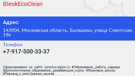 BleskEcoClean по адресу 143904, Московская область, Балашиха, улица Советская, 19е в дальнейшем Организация, размещена в следующих категориях: