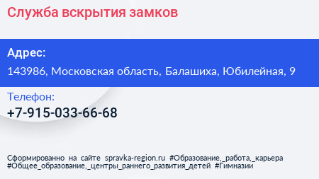 Служба вскрытия замков по адресу 143986, Московская область, Балашиха, Юбилейная, 9 в дальнейшем Организация, размещена в следующих категориях: