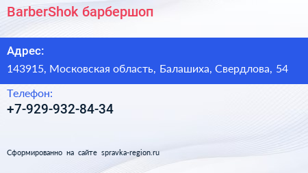 BarberShok, барбершоп по адресу 143915, Московская область, Балашиха, Свердлова, 54 в дальнейшем Организация, размещена в следующих категориях: