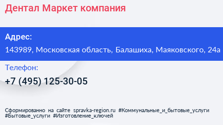 Дентал Маркет, компания по адресу 143989, Московская область, Балашиха, Маяковского, 24а в дальнейшем Организация, размещена в следующих категориях: