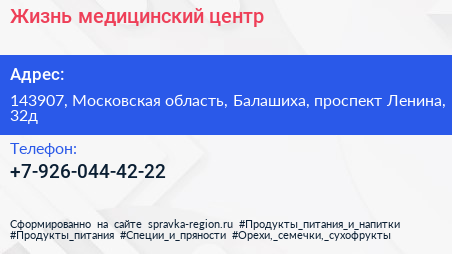 Жизнь, медицинский центр по адресу 143907, Московская область, Балашиха, проспект Ленина, 32д в дальнейшем Организация, размещена в следующих категориях: