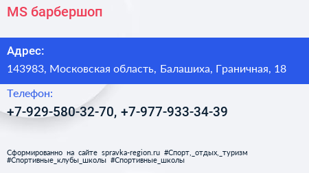 MS, барбершоп по адресу 143983, Московская область, Балашиха, Граничная, 18 в дальнейшем Организация, размещена в следующих категориях: