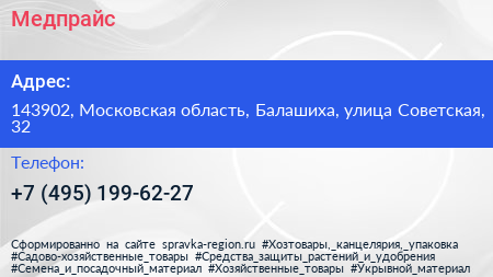 Медпрайс по адресу 143902, Московская область, Балашиха, улица Советская, 32 в дальнейшем Организация, размещена в следующих категориях: