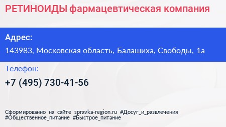 РЕТИНОИДЫ, фармацевтическая компания по адресу 143983, Московская область, Балашиха, Свободы, 1а в дальнейшем Организация, размещена в следующих категориях: